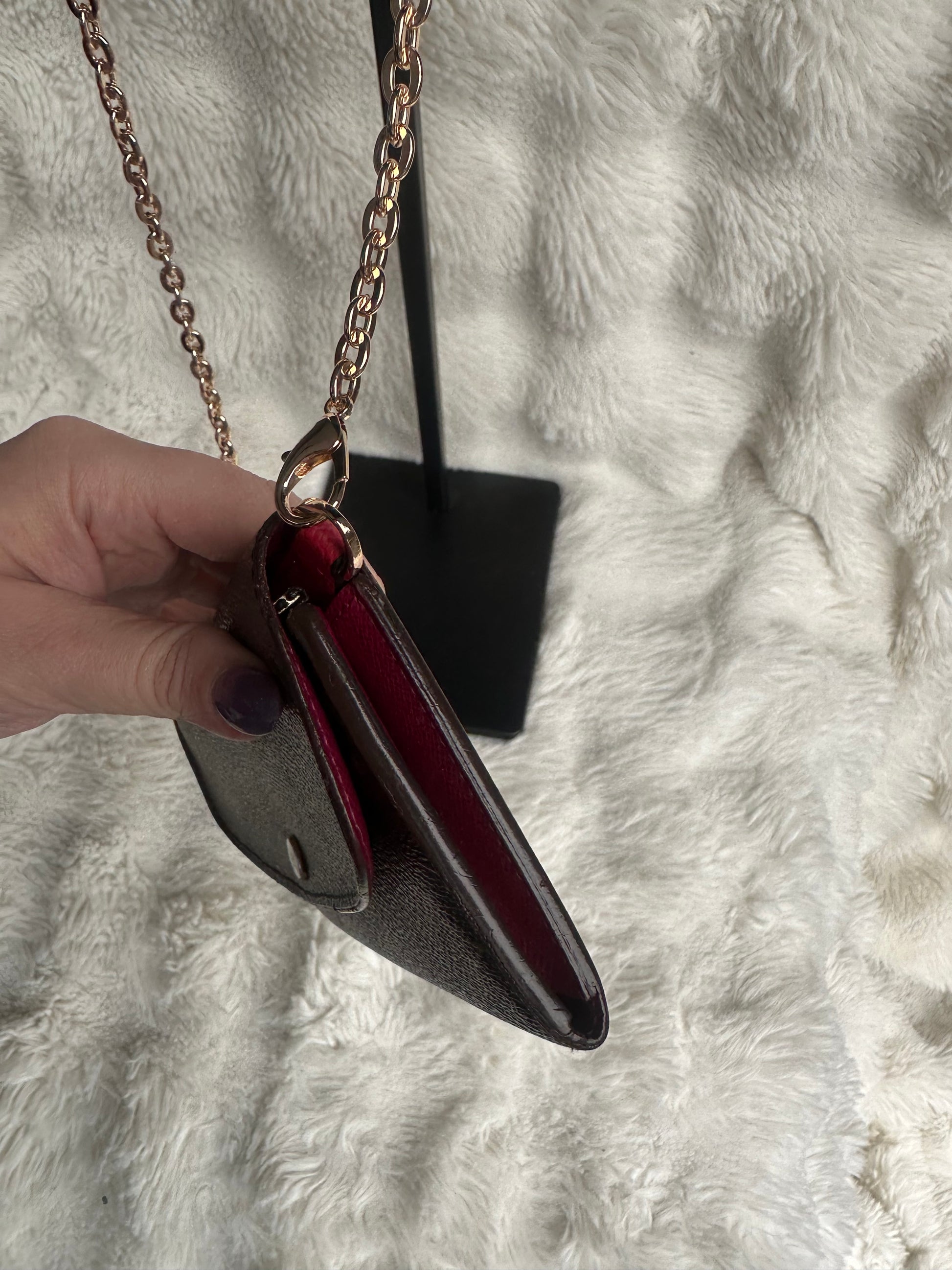 Cross body/shoulder chain is removable so you can use as a wallet or a bag when suits.