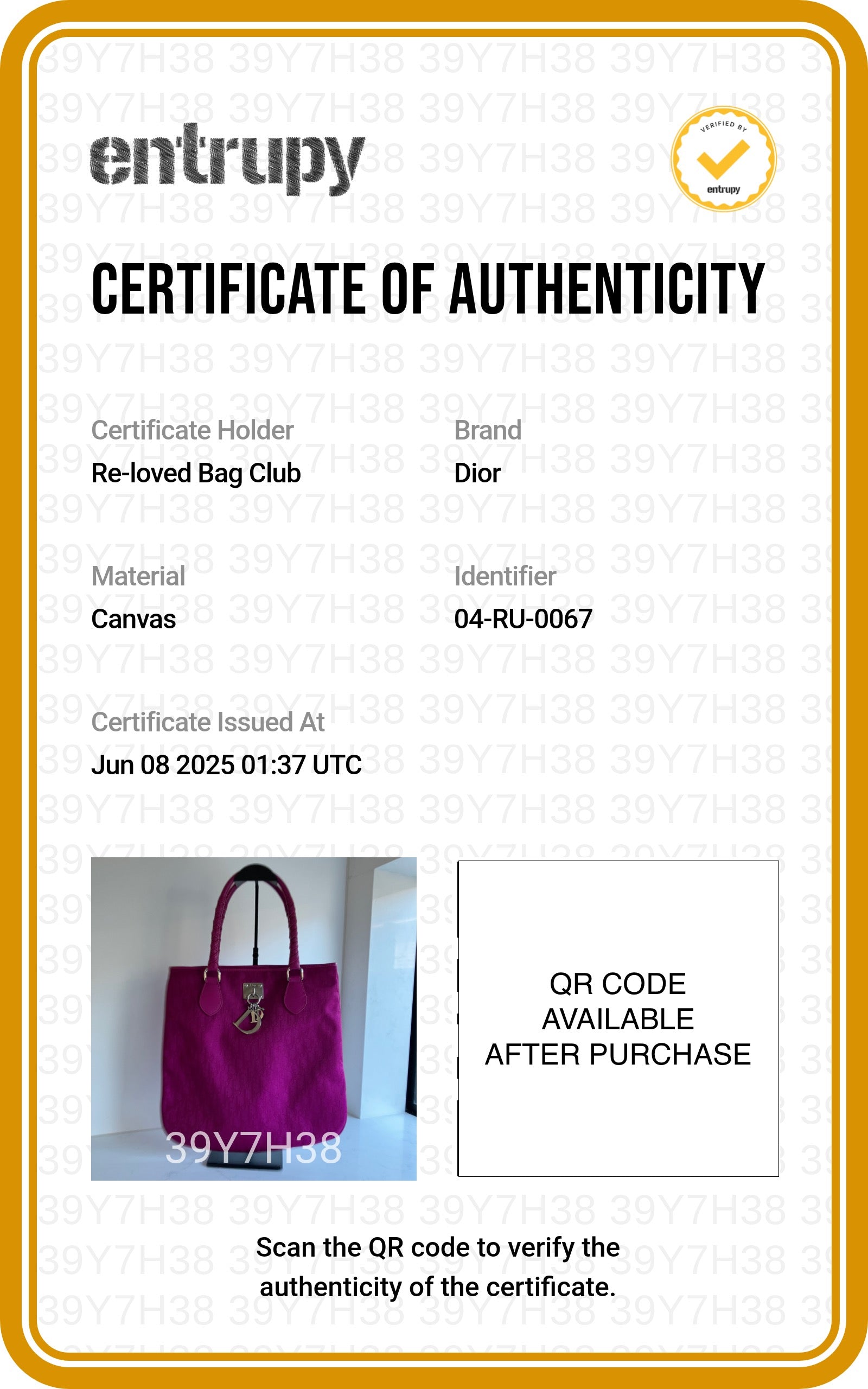100% guaranteed authentic, this comes with an Entrupy authentication certificate & a plain dust bag.