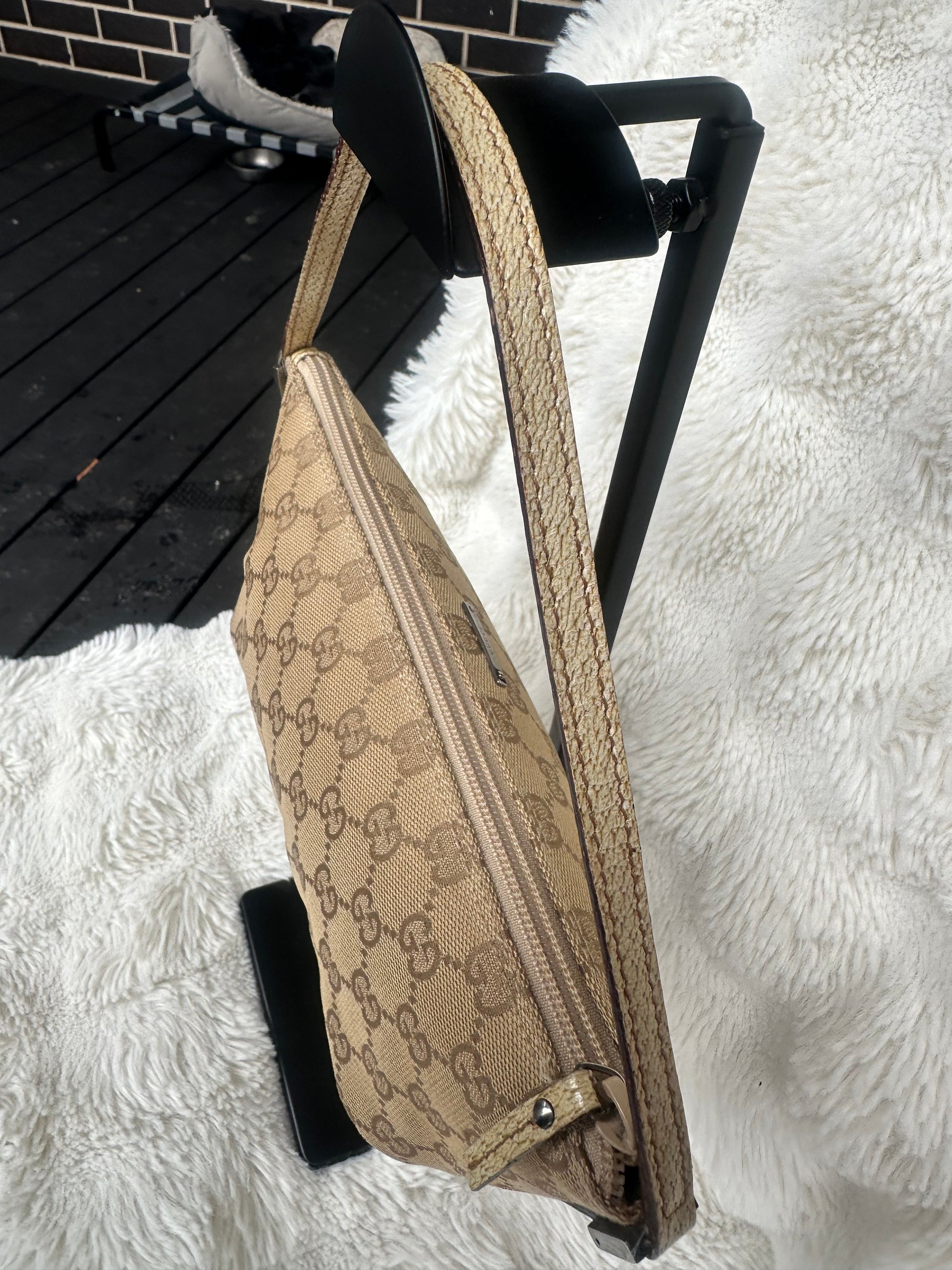 Experience luxury reimagined with our pre-loved Gold Gucci Boat. This stunning designer piece has been carefully curated for its exceptional condition and distinctive color. Embrace sustainable fashion without compromising on style or quality. The captivating Golden hue adds a unique touch to Gucci's iconic craftsmanship, making this a standout addition to your collection. Indulge in designer luxury at a smarter price point while making an environmentally conscious choice.