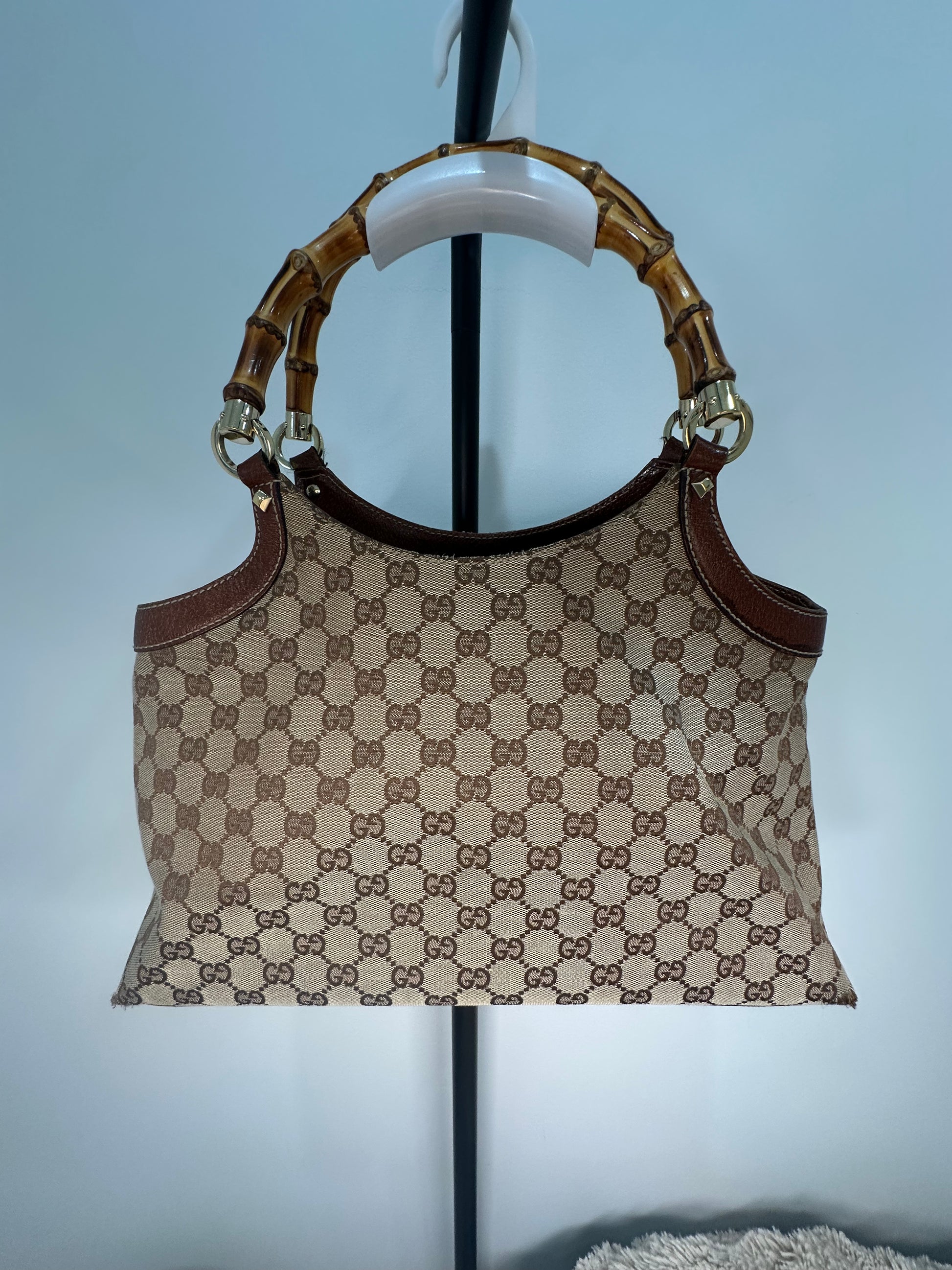 Capture the essence of Italian luxury with the Gucci Bamboo Tote. This prestigious accessory showcases the brand's legendary craftsmanship through its distinctive bamboo handles—a hallmark of Gucci's innovative design heritage. Meticulously constructed with premium materials, this tote offers both sumptuous style and practical functionality. Its timeless silhouette and generous proportions make it the perfect companion for the fashion-conscious individual. Elevate your collection with this iconic piece that seamlessly blends classic elegance with contemporary sophistication.