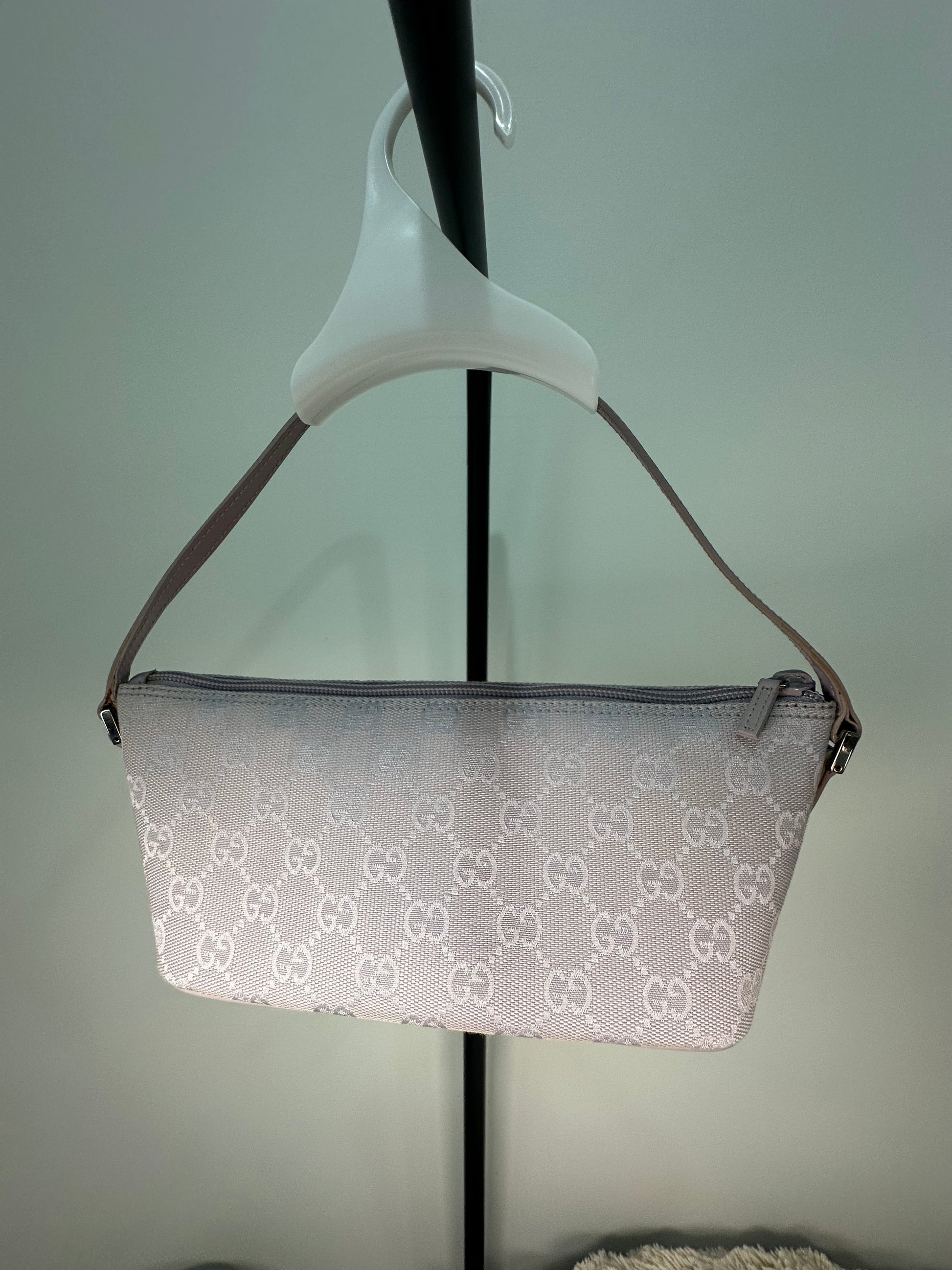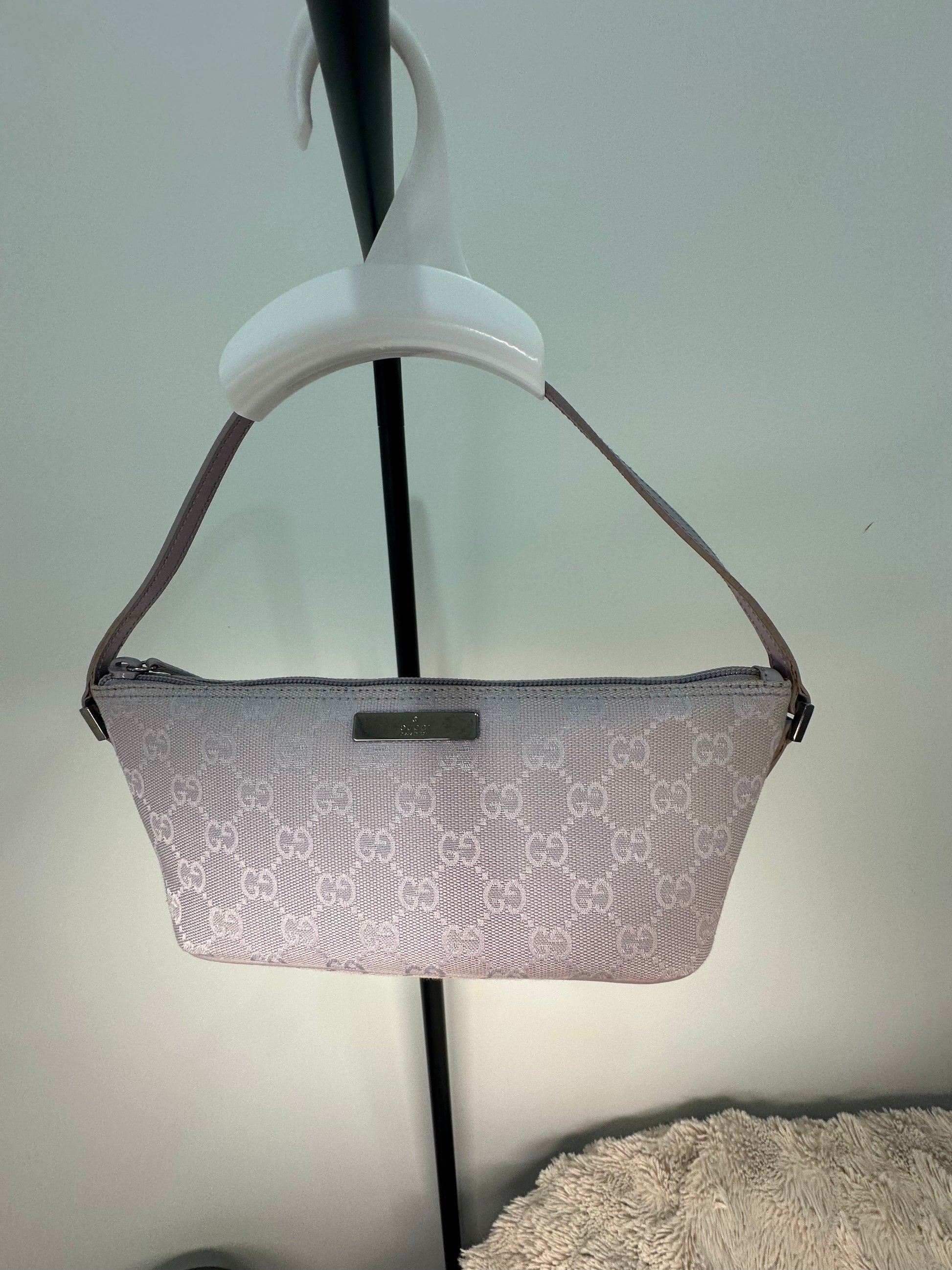 Experience luxury reimagined with our pre-loved Lilac Gucci Boat. This stunning designer piece has been carefully curated for its exceptional condition and distinctive color. Embrace sustainable fashion without compromising on style or quality. The captivating lilac hue adds a unique touch to Gucci's iconic craftsmanship, making this a standout addition to your collection. Indulge in designer luxury at a smarter price point while making an environmentally conscious choice.