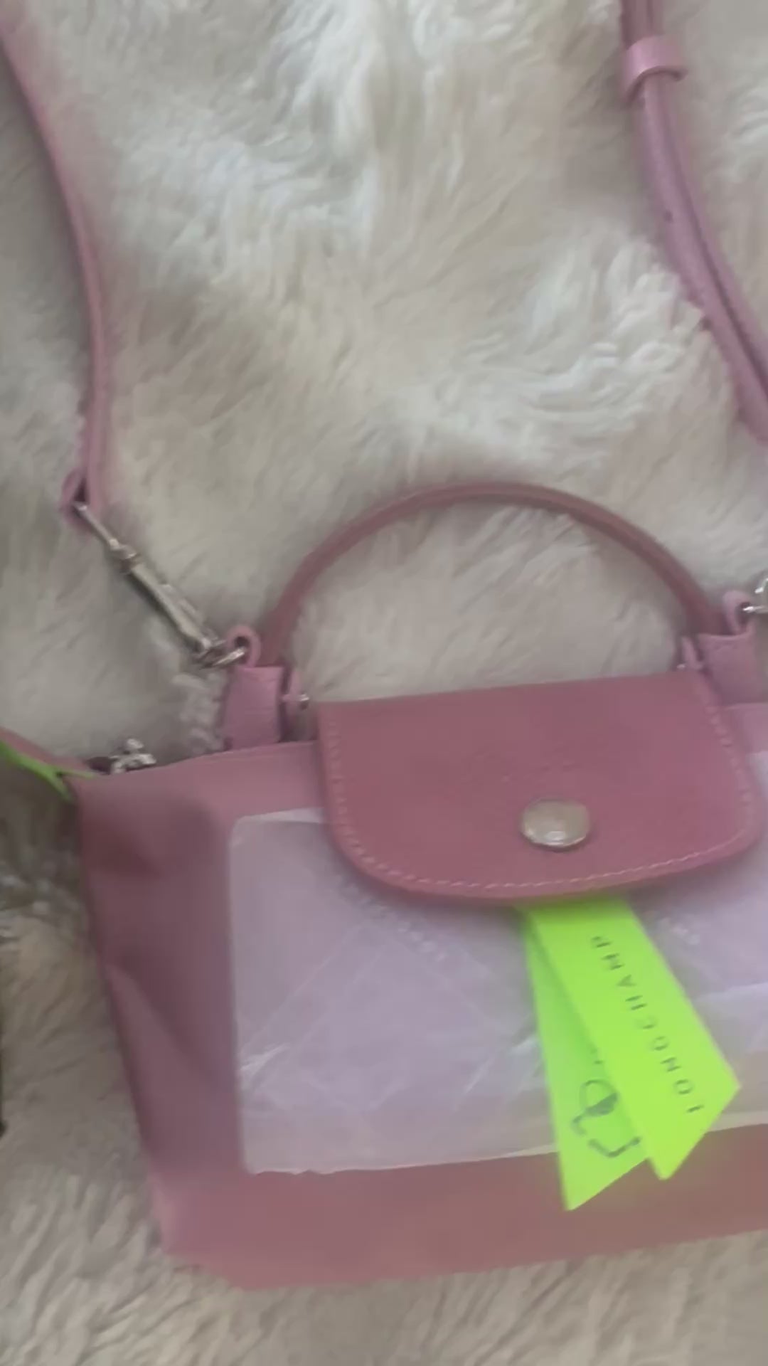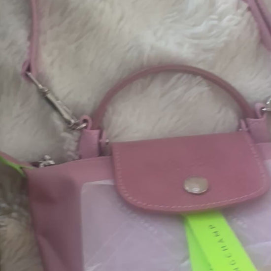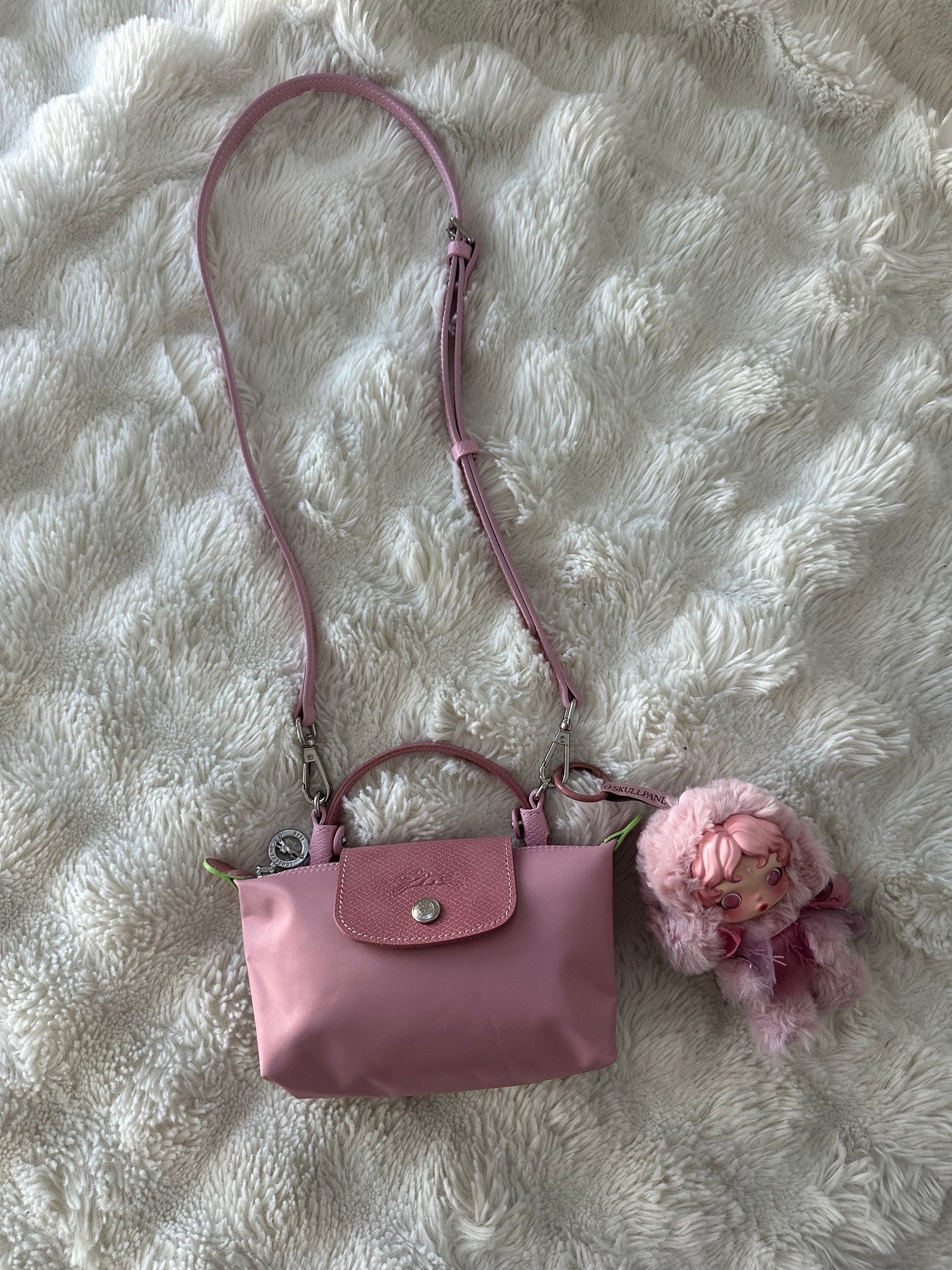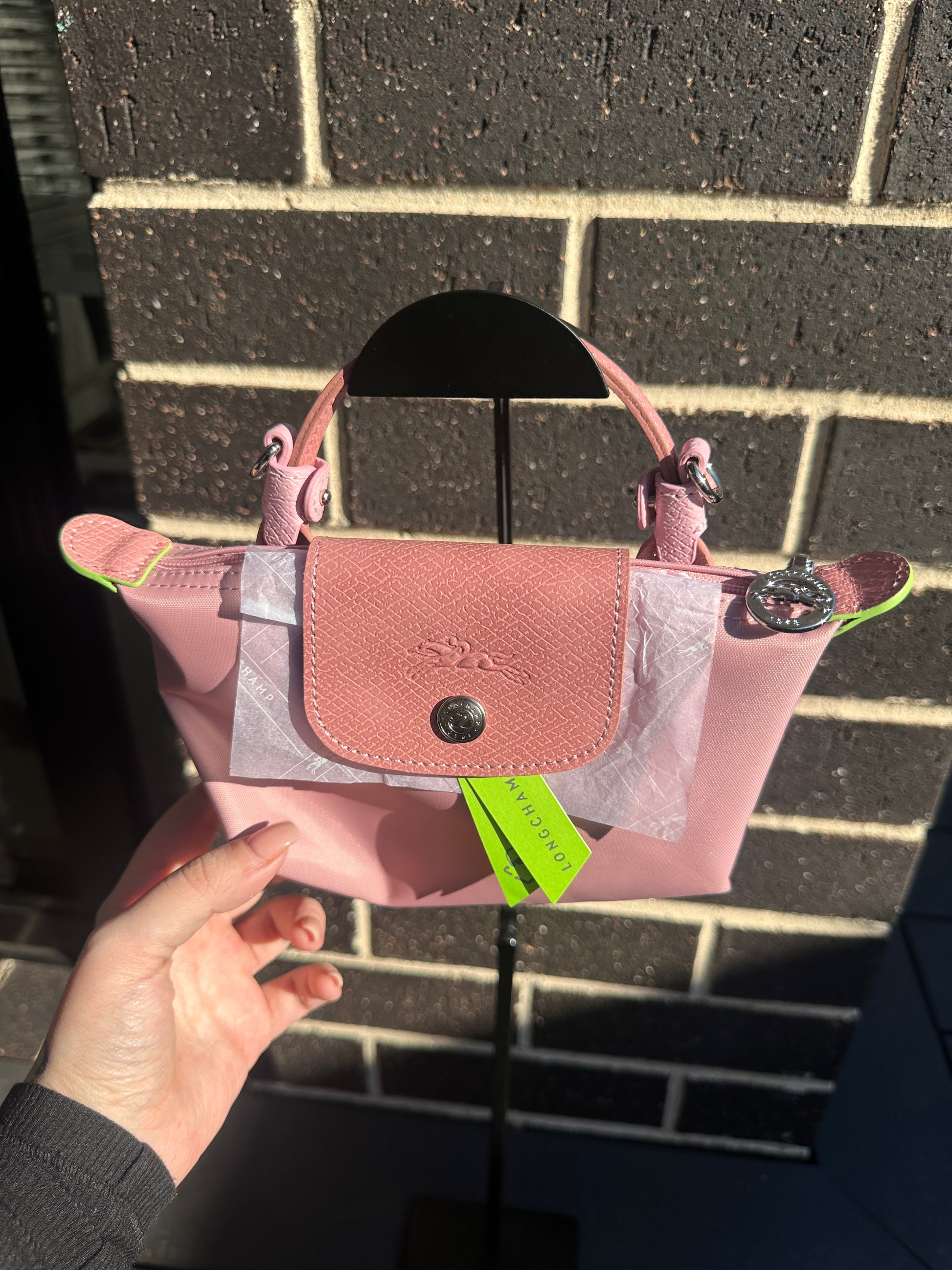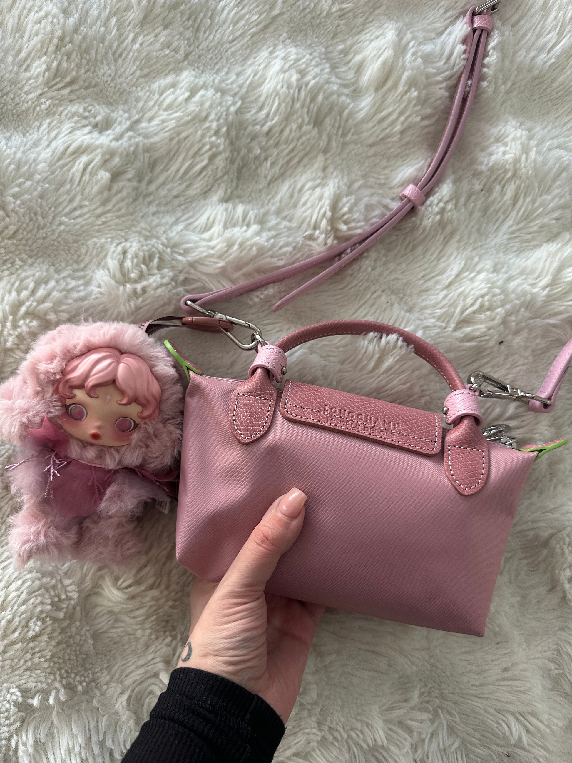 Longchamp Paris Mini Pliage nylon Sakura pink with crossbody strap