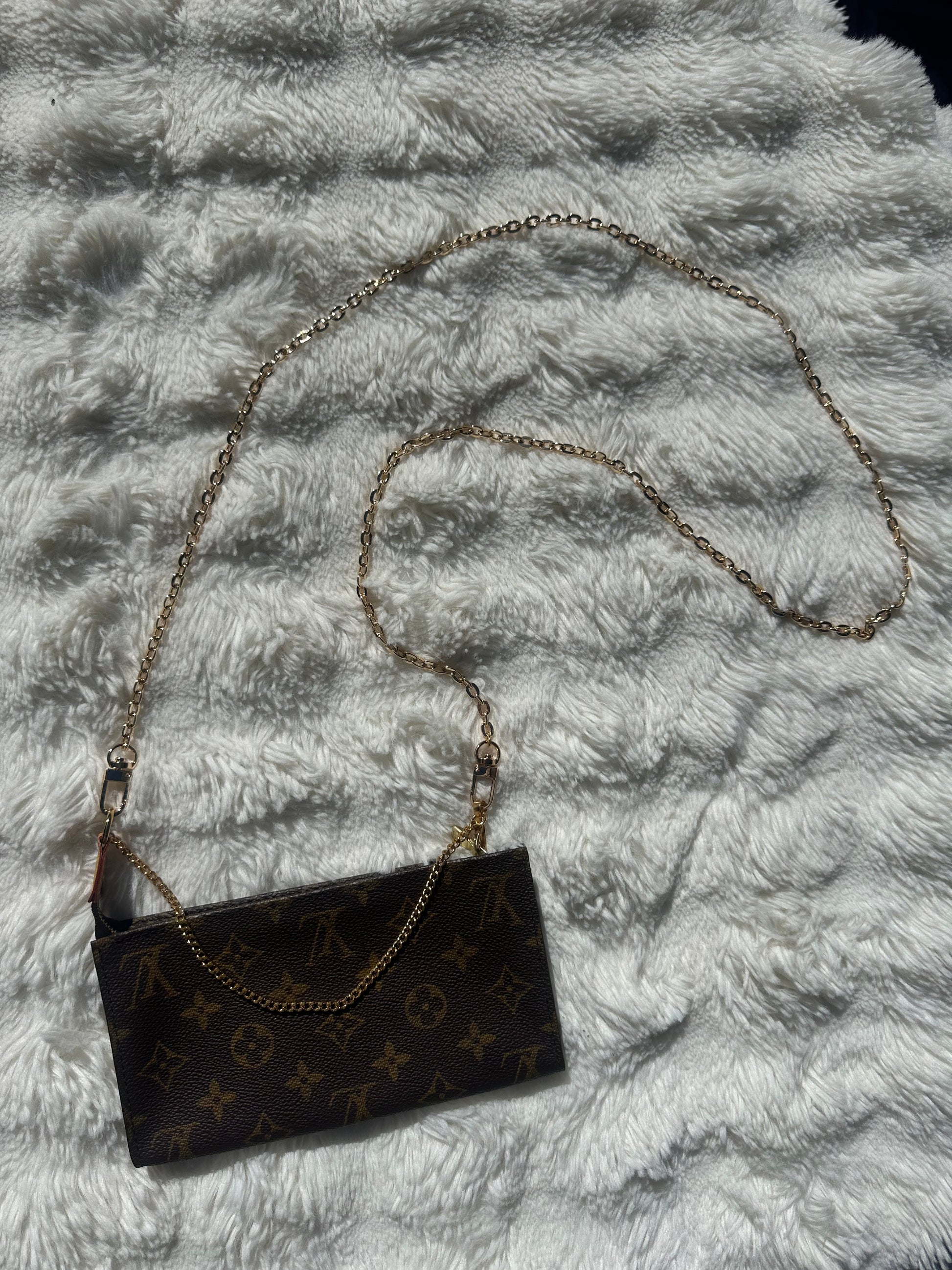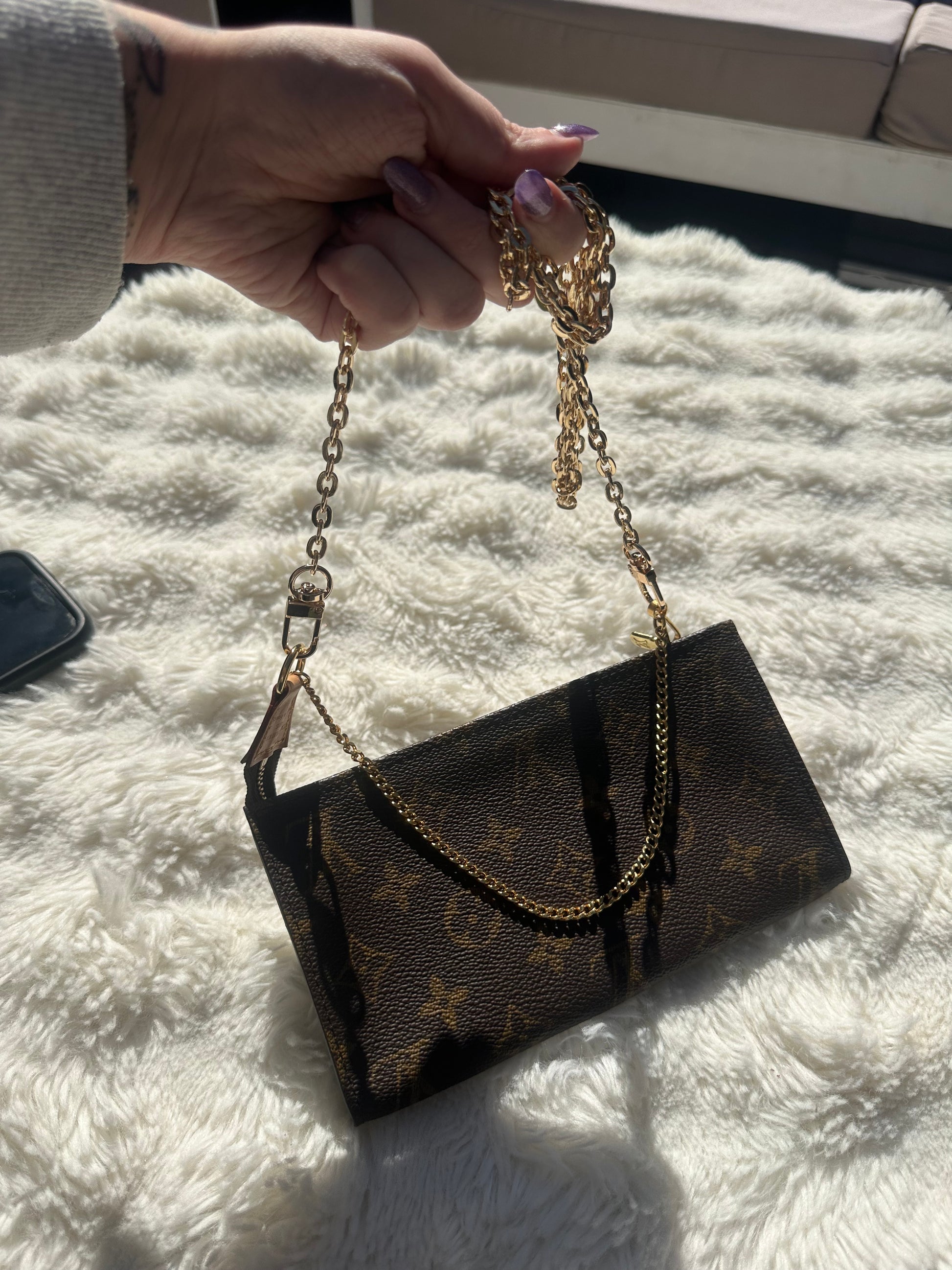 Hardware: Includes a non-original gold-tone chain strap for added versatility and crossbody styling.